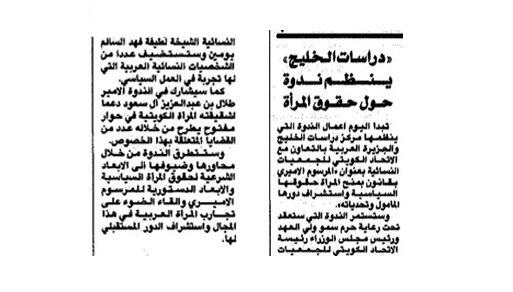 تبدأ اليوم أعمال الندوة التي ينظمها مركز دراسات الخليج والجزيرة العربية بالتعاون مع الاتحاد الكويتي للجمعيات النسائية بعنوان المرسوم الأميري بقانون بمنح المرأة حقوقها السياسية واستشراف دورها المأمول وتحدياته