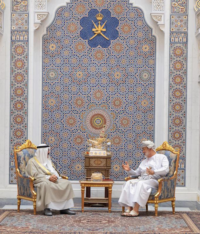 وعقد سمو الأمير والوفد المرافق له لقاءً أخويًا مع جلالة السلطان في قصر البركة العامر بالعاصمة مسقط، جرى خلاله تبادل الأحاديث الودية التي عكست عمق العلاقات الأخوية الراسخة بين البلدين الشقيقين، وسبل دعم مسيرة التعاون الثنائي في مختلف المجالات، لا سيما في الميادين الاقتصادية والتجارية والاستثمارية، بما يسهم في تعزيز التنسيق والتكامل المشترك.